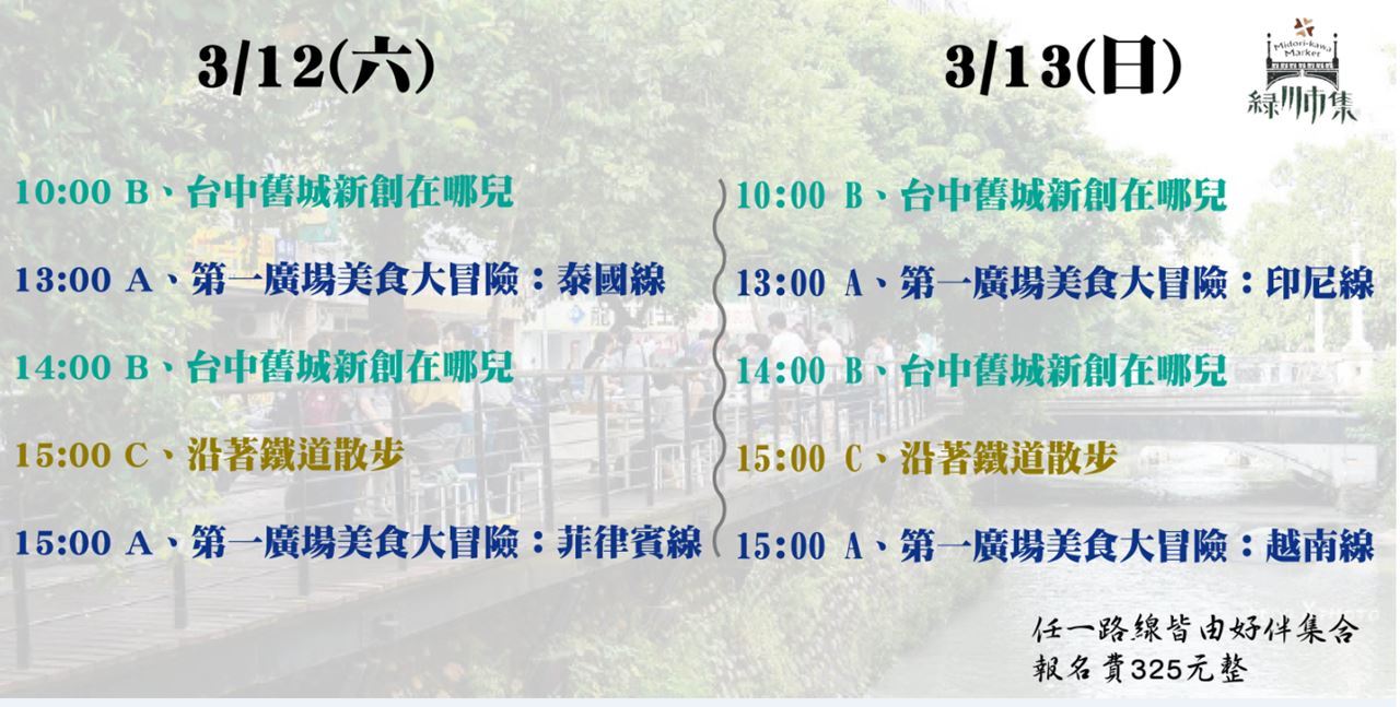 導覽時間:3/12(六) - 3/13(日) 綠川市集