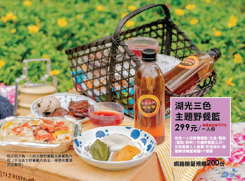 還有「湖光三色集章打卡樂」活動持續到8/15,跟著三色主題漫遊頭屋,夢幻野餐籃、下午茶券、多項頭屋伴手好禮等著您 !這個週末,就來苗栗頭屋走走吧!