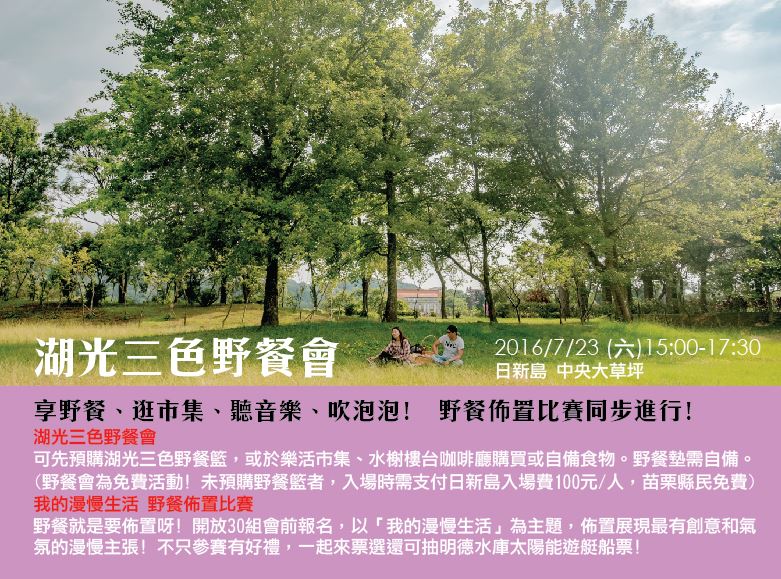 2016/7/23(六) 頭屋漫慢生活節開幕儀式、湖光三色野餐會、樂活市集、"我的漫慢生活"野餐佈置比賽
