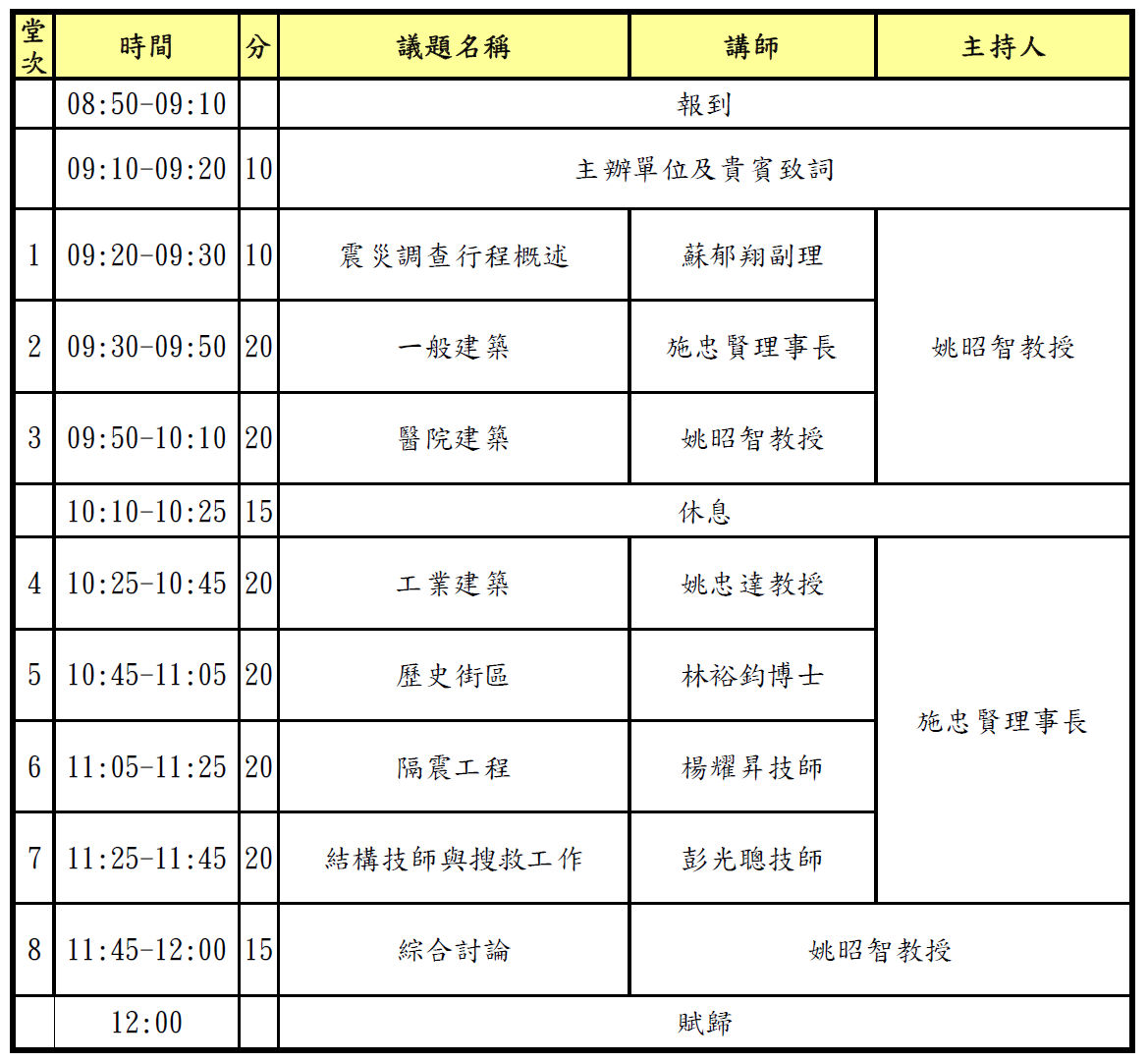 內政部建築研究所於該劇震發生後即刻啟動與地震災損等相關資訊之蒐集工作;成功大學姚昭智教授亦邀集國內教授以及業界技師成立震災調查工作團隊,於4月23日至5月2日前往土耳其震災調查,並就當地醫院建築及隔震工程進行現地調查工作,本研討會將與國內學界及工程界分享震災調查所得,希冀為工程專業人員帶來實務上之助益。