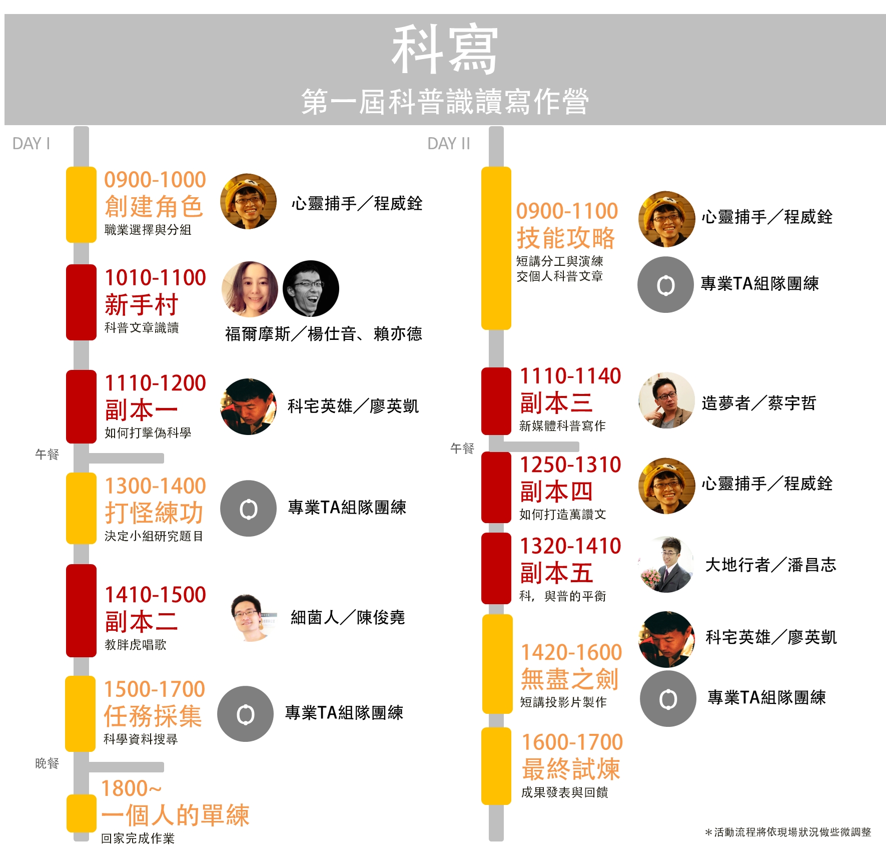 所以我們想要辦一個不一樣的寫作營,在兩天的課程裡面,我們除了請泛科學的科普作者來分享經驗,還會: