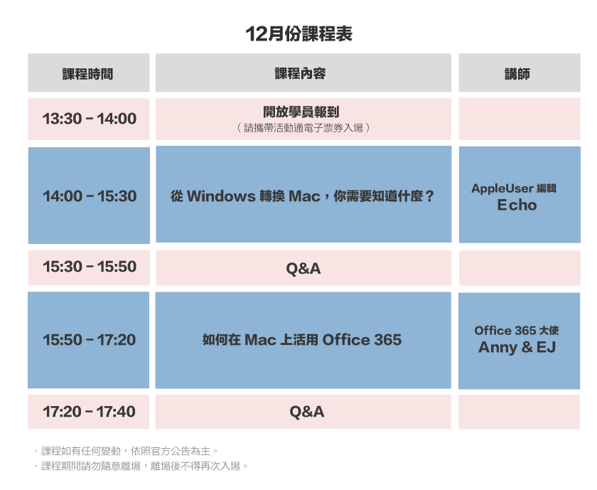 如欲報名我們的「體驗課程」,先至《 Mac 30 日零元體驗計畫 》網站報名:http://ppt.cc/vYlZ2