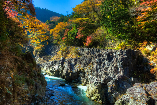 鳩之巢溪谷位於多摩川沿岸,擁有各式巨岩奇石及深邃峽谷,是紅葉名所。