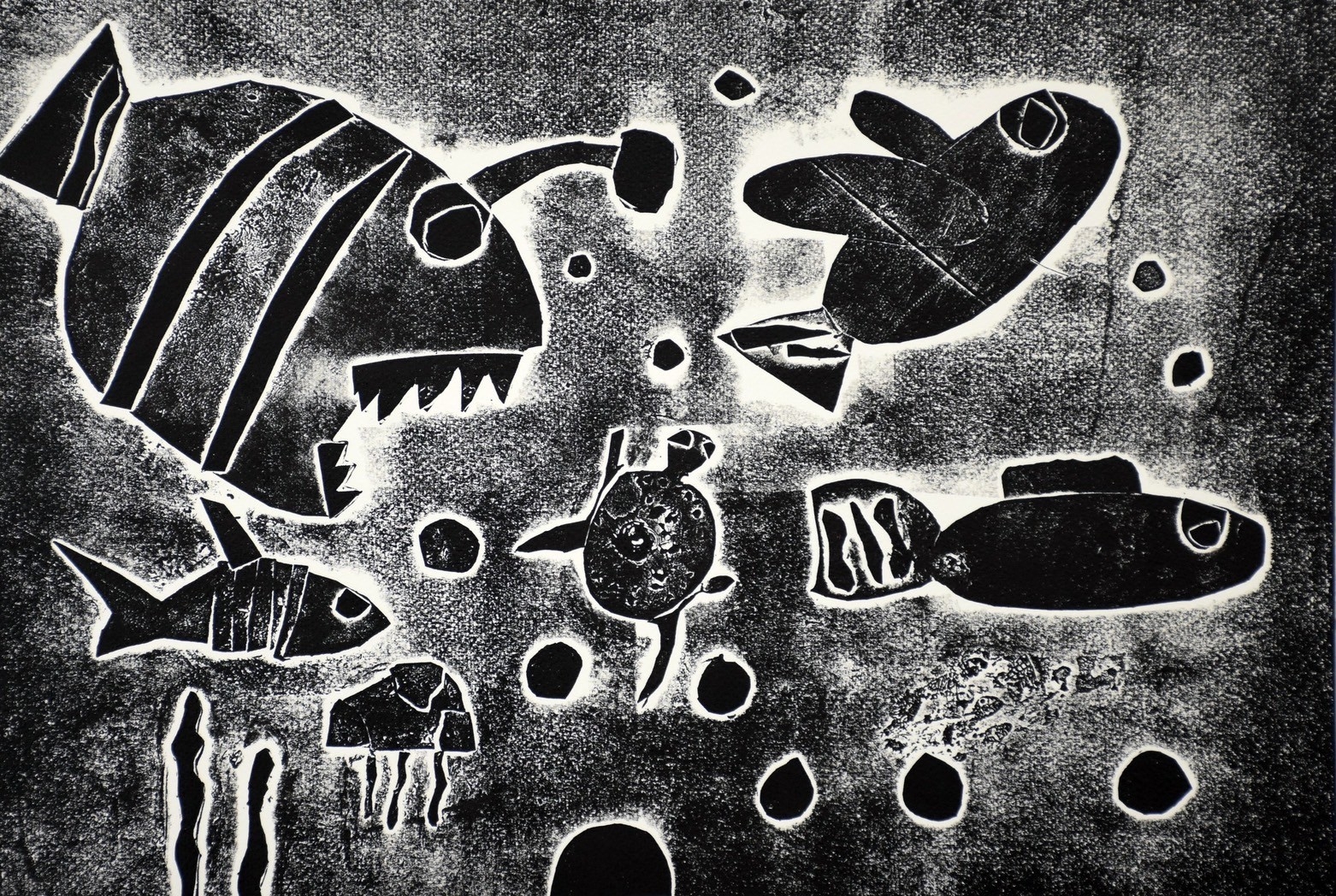 紙版畫以紙材為製版的材料,透過各式紙材裁剪、黏貼、裱貼製造肌理。由於紙材方便剪、刻、撕、貼、戳,上膠乾燥快速,剪刀、刀片等簡易工具,即可達到分割效果,進而將貼紙黏貼拼湊成凸板,是饒富趣味性與實驗性的版種。再運用版印技法在突起的貼紙部份以及底板滾上油墨,壓印至紙張上創作,一幅紋路自然,有調子肌理的作品即將誕生囉!