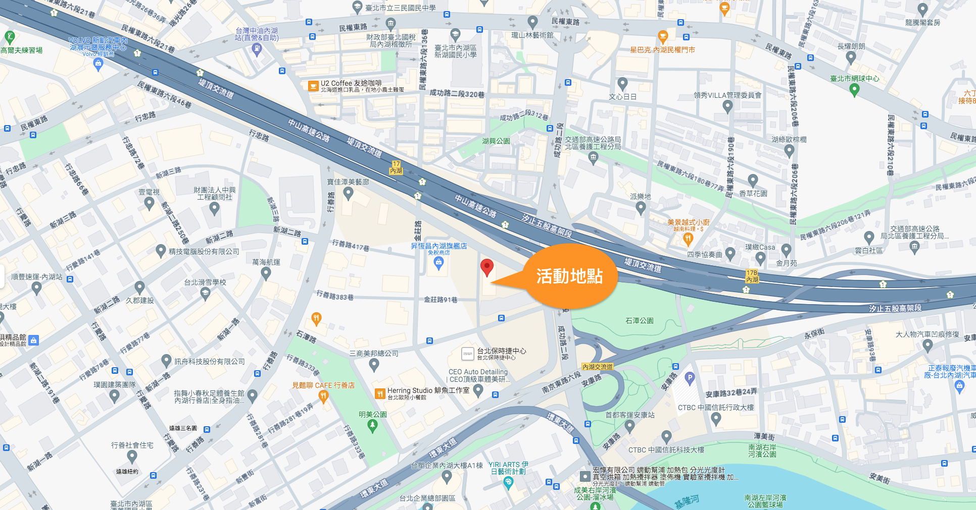 🚗 自行開車:內湖交流道(備註:鄰近活動地點有自費停車場)
