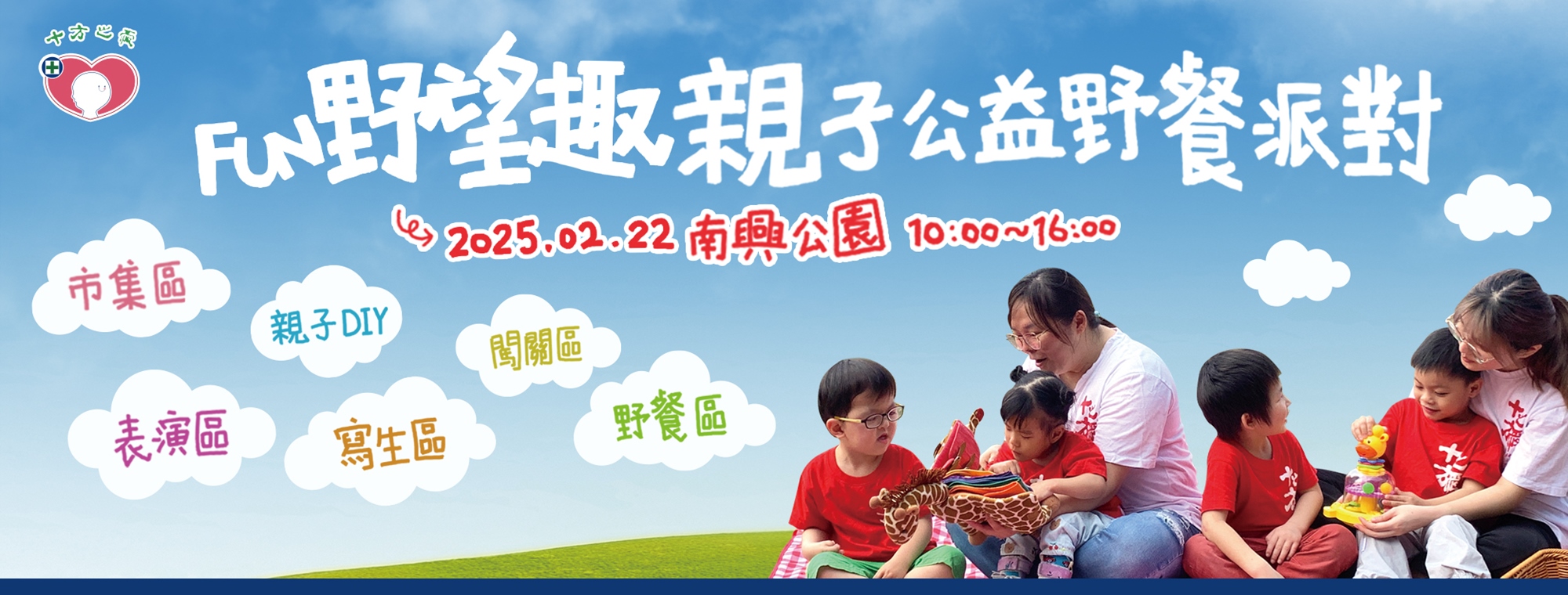 我們將於2/22(六)參加「2025年十方FUN野望趣親子公益野餐派對」擺攤義賣,活動資訊 https://www.sfang.org.tw/OnePage.aspx?tid=6&id=437