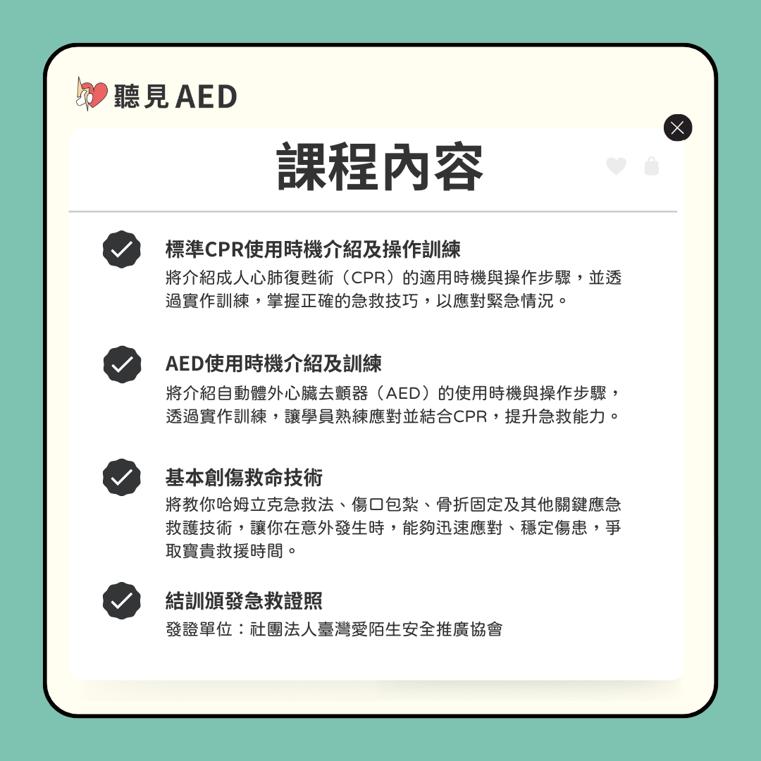 受訓對象:對緊急救護技術有興趣之社會人士或學生