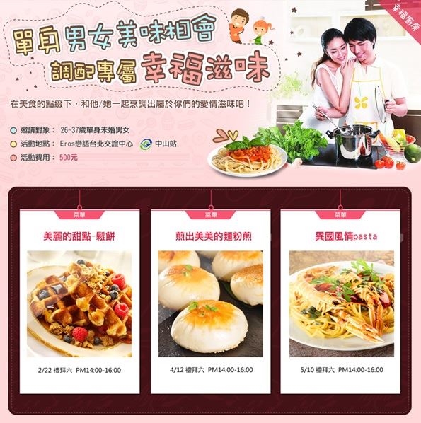 在美食的點綴下,和他/她一起烹調出屬於你們的愛情滋味吧!!