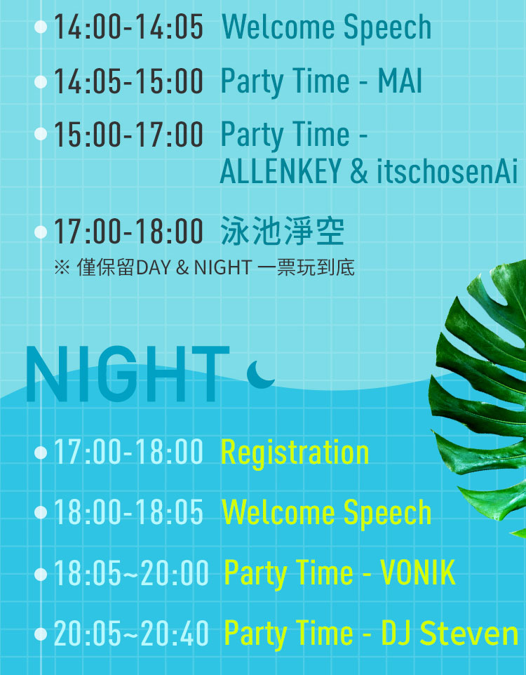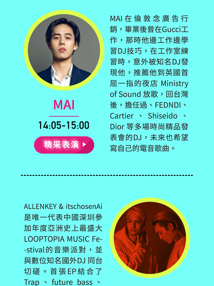 6. 如因不可抗力因素活動延期,因國外DJ排程時間,DJ陣容將會變更異動,台灣赫斯特媒體保有活動最終變更或解釋權益。