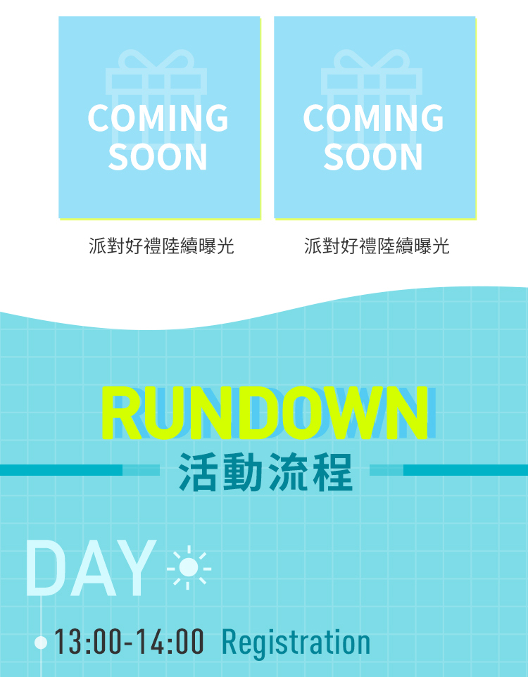 2. 本活動場地於萬麗酒店10樓泳池區,完成報到前往10樓泳池時,於公共區域不能著泳裝,請套件上衣或外套需著服裝。