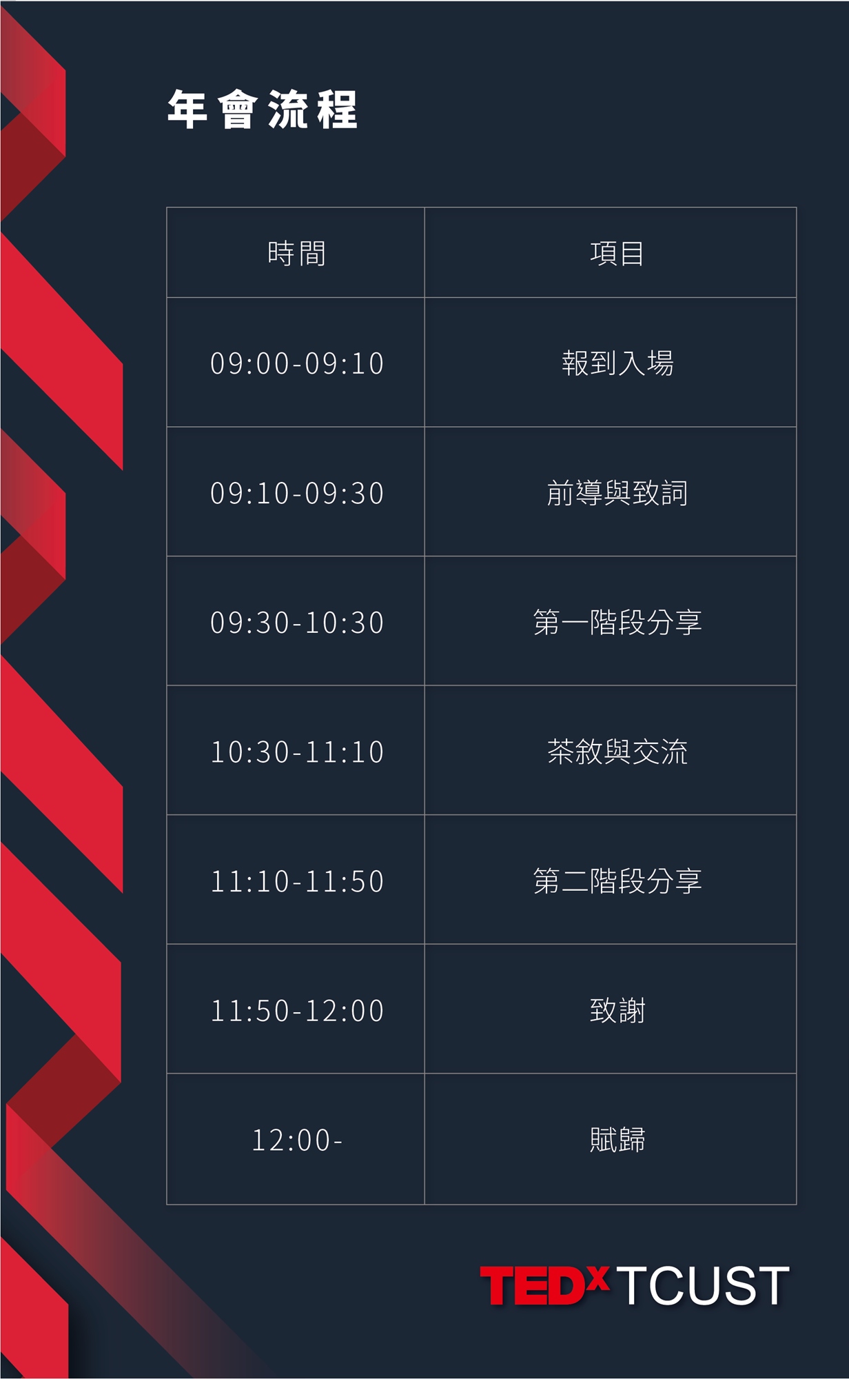 3.TEDxTCUST策展團隊保有變更活動相關內容之相關權利 。
