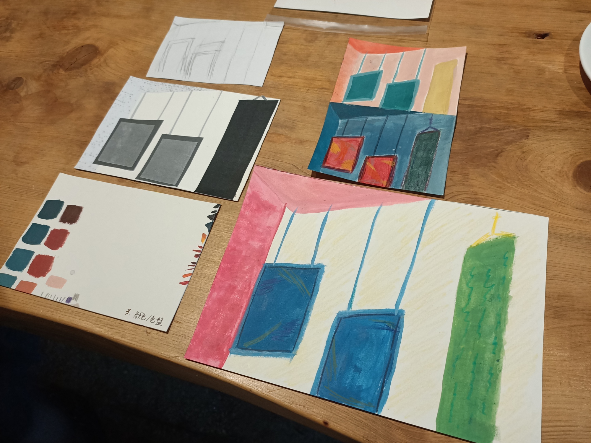 *下方圖示為老師教學時的範例(非讓學生模仿使用的圖片,會帶學生運用上課地點的場景來構圖。):