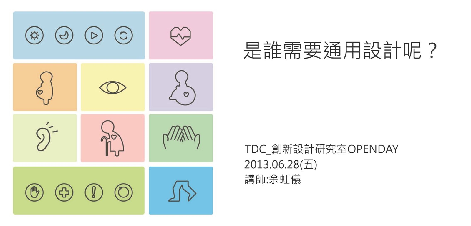 在六月TDC創新設計體驗室open-day,我們邀請到長期投入通用設計研究的余虹儀小姐,帶我們一看生活中有多少貼心的設計、輔助產品,是這樣默默地照顧到我們每一個人!座位有限,歡迎有興趣的朋友參加。