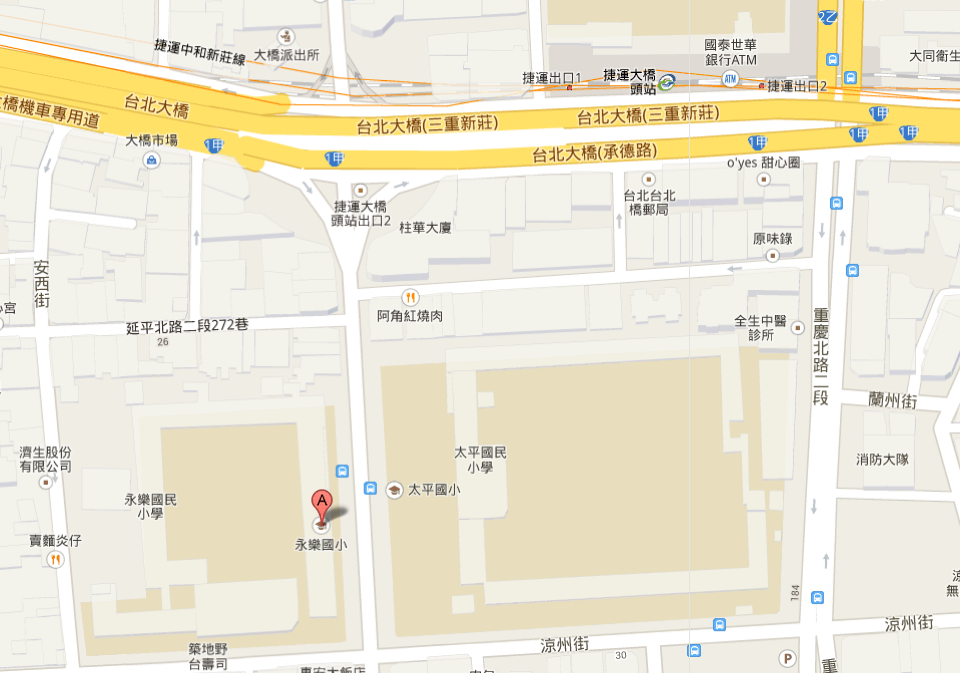 台北市永樂國小,地址:臺北市大同區延平北路二段266號,近捷運大橋頭站。