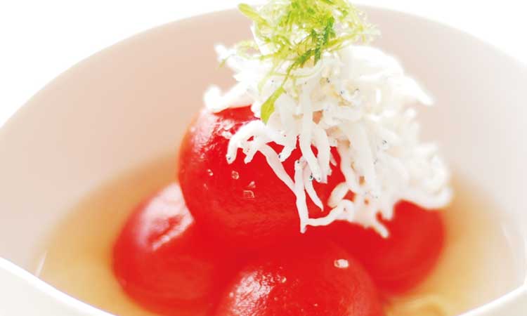 接著一道清爽健康的「出汁蕃茄魩仔魚沙拉」,