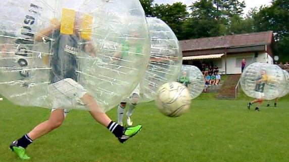 這項風靡日本及歐洲的KUSO運動,只要把像防護罩的啵啵球穿上,