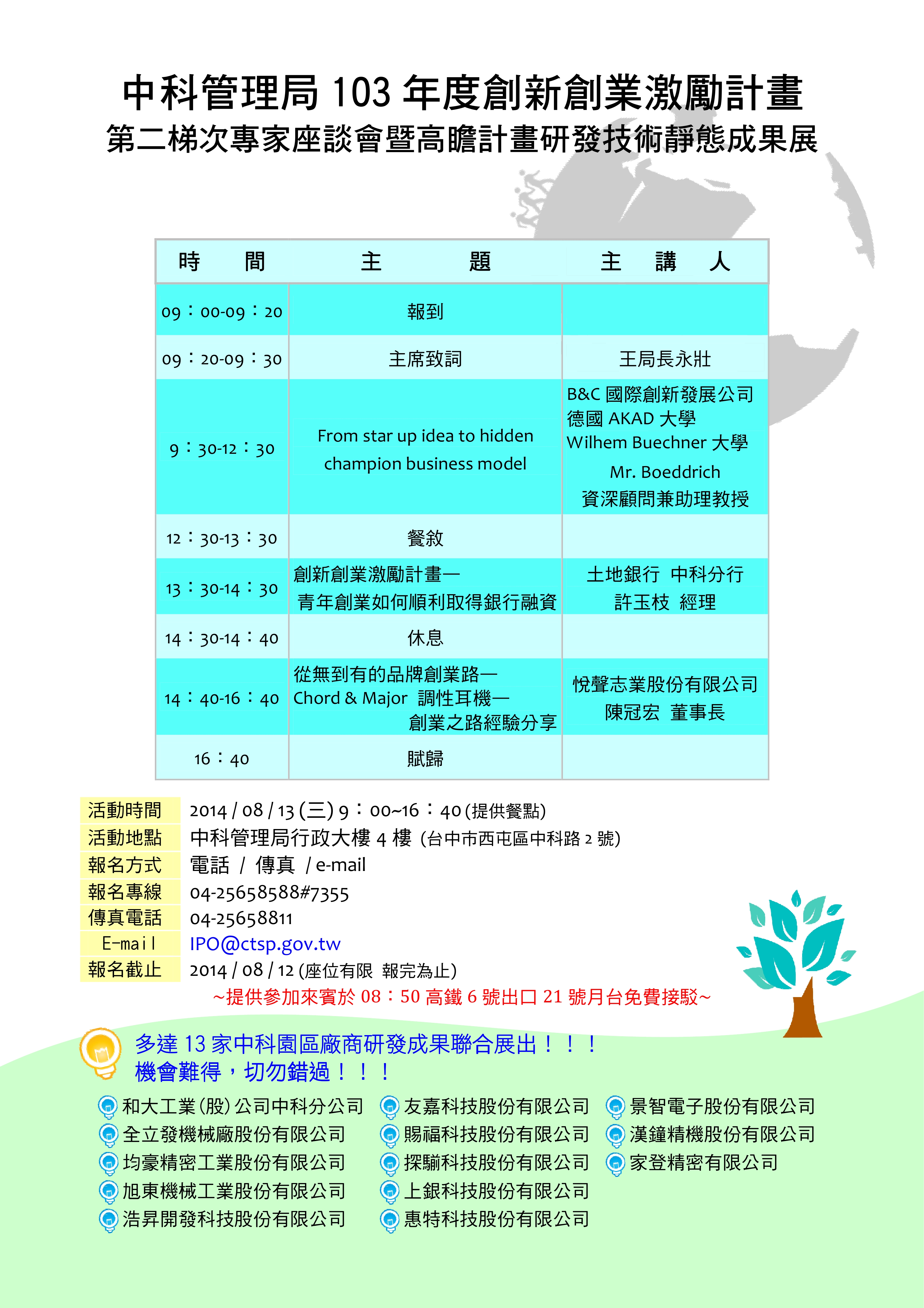 中科管理局創新創業激勵計畫103年度第二梯次專家座談會