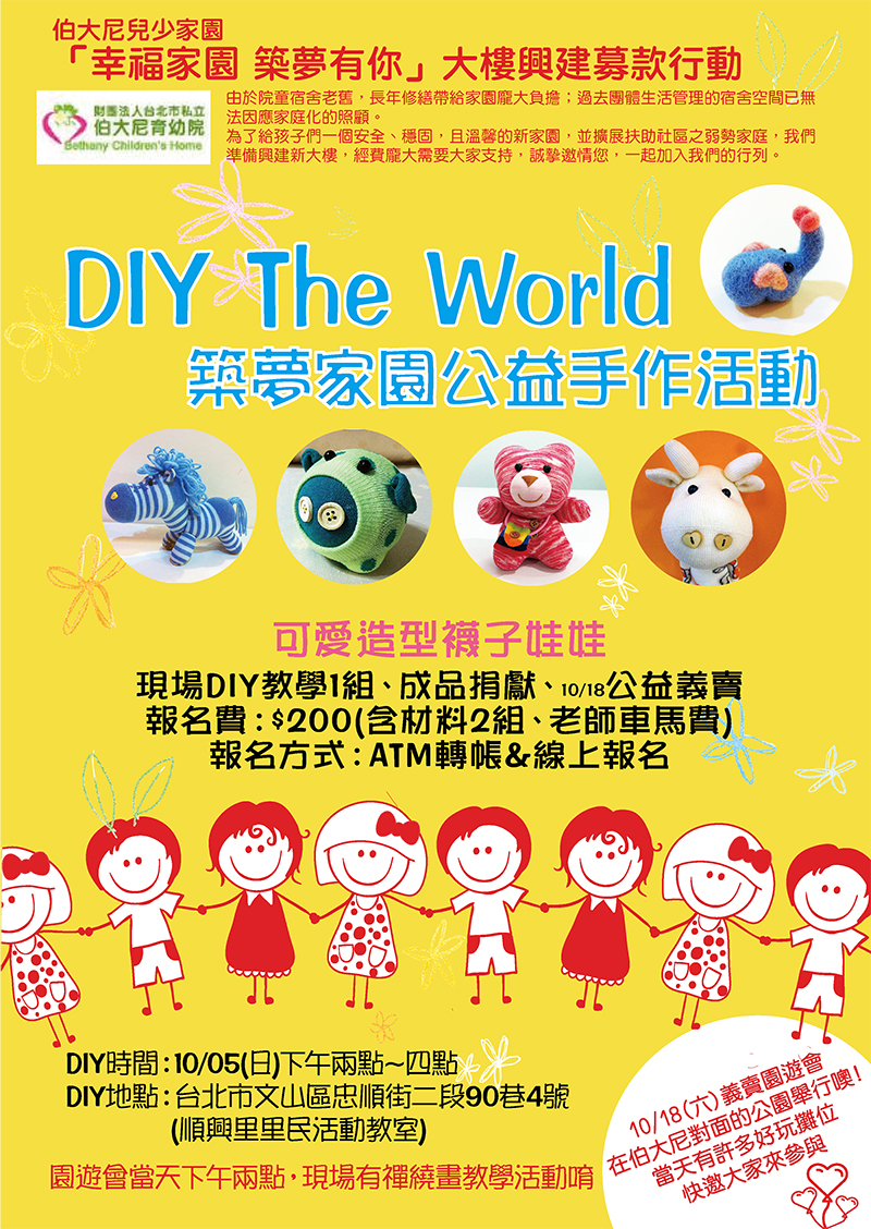 1. 10/05(日) DIY教學課:可愛造型襪子娃娃