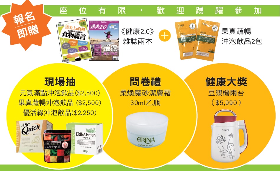 本場次席位已額滿,未來有更多健康講座訊息,敬請留意健康2.0雜誌及粉絲團。