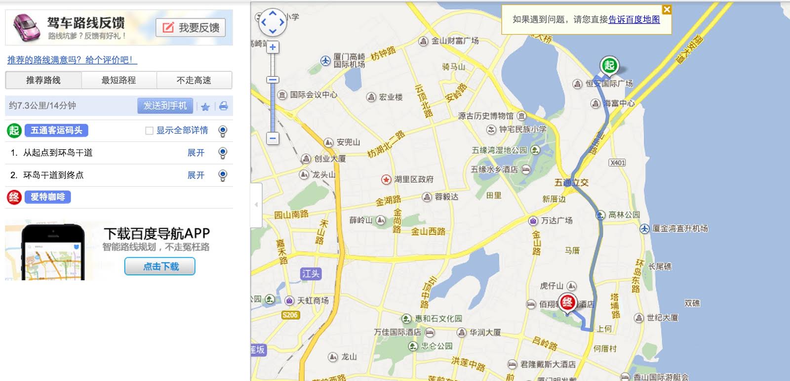 由五通碼頭至愛特咖啡約7公里路程,耗時20分鐘左右。