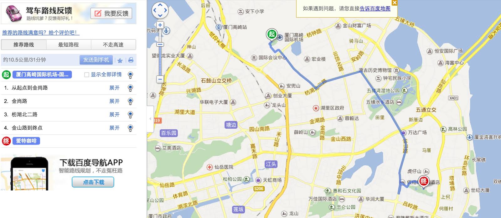 由高琦機場至愛特咖啡約12公里路程,耗時30分鐘左右。