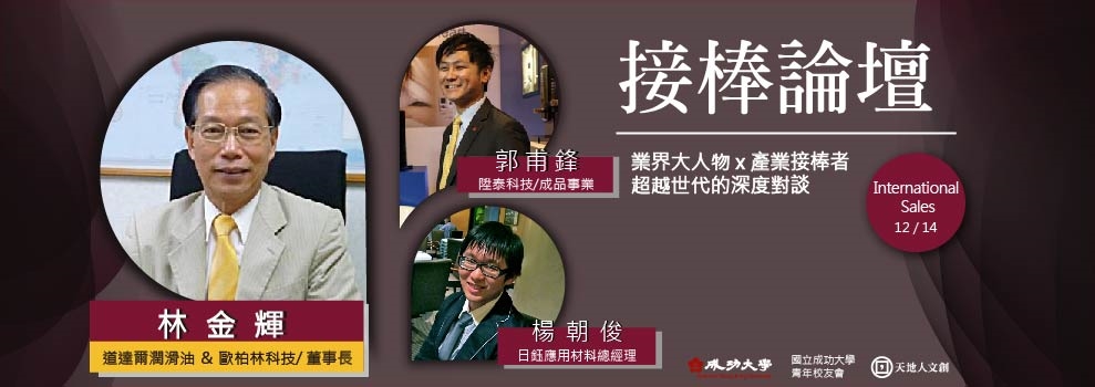 接棒論壇,一個向前輩取經的獨家機會。本次講座,我們將以國際貿易實務與業務銷售為主,並邀請到在42年的國際業務生涯中,走訪將近90個國家,擁有相當豐富國貿談判經驗的道達爾潤滑油董事長-林金輝董事長擔任交棒者,博學廣識的林董事長,對將分享在國際貿易這塊領域上的產業經驗、趨勢觀察與人生體悟。