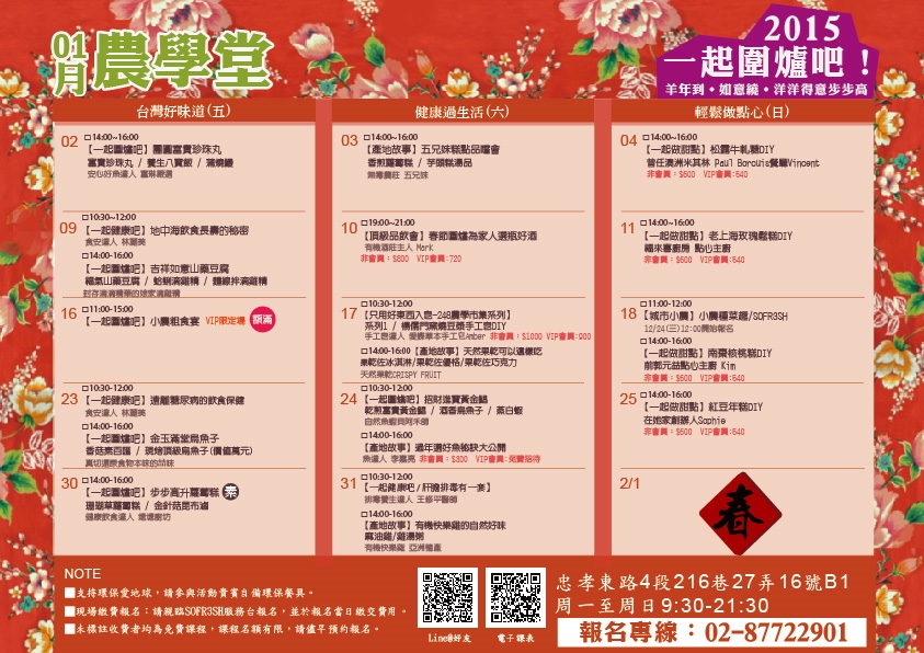 *每堂課請自備提袋與餐盒,以便帶回成品。