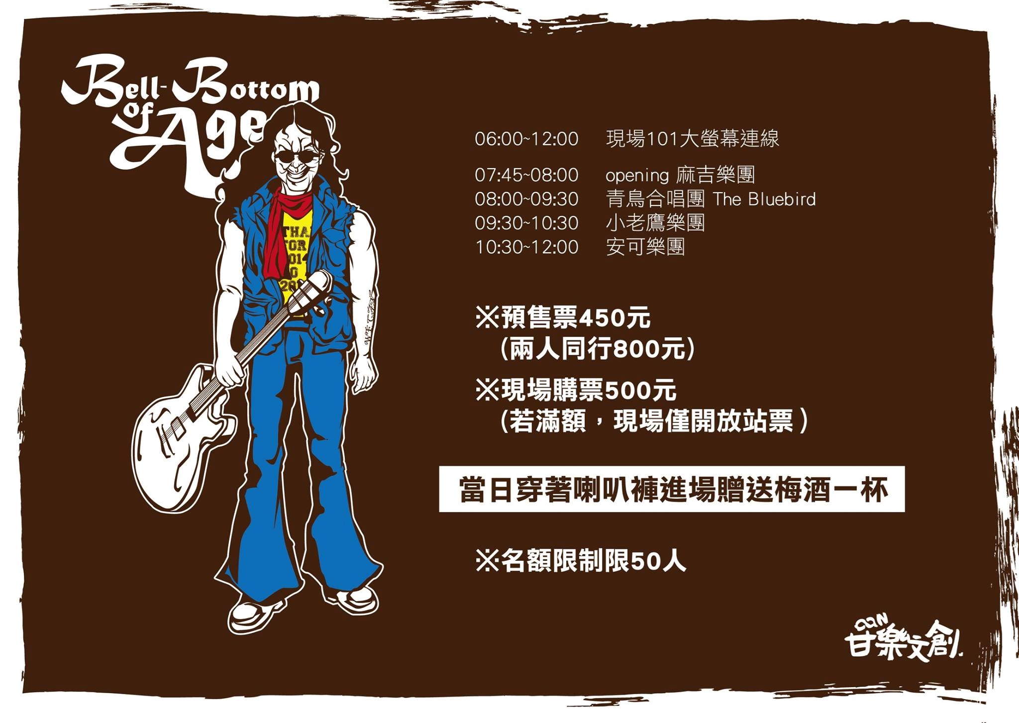 當日穿著喇叭褲進場贈送梅酒一杯~