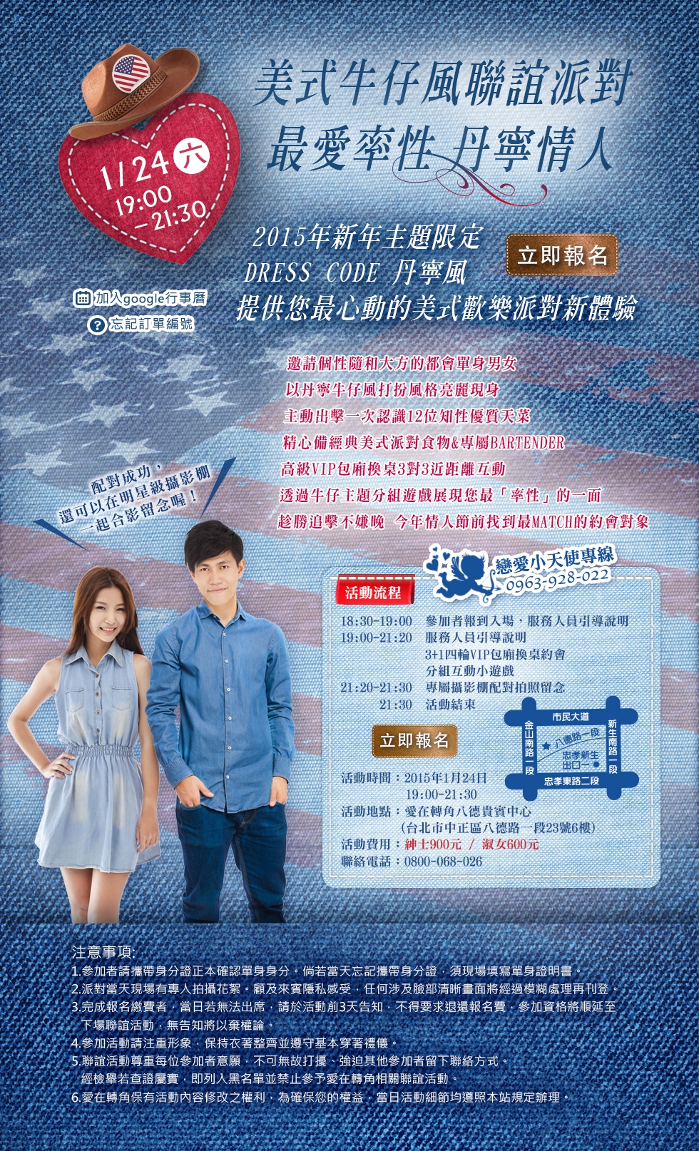 愛在轉角 2015/1/24(六) 美式牛仔風聯誼派對來囉!