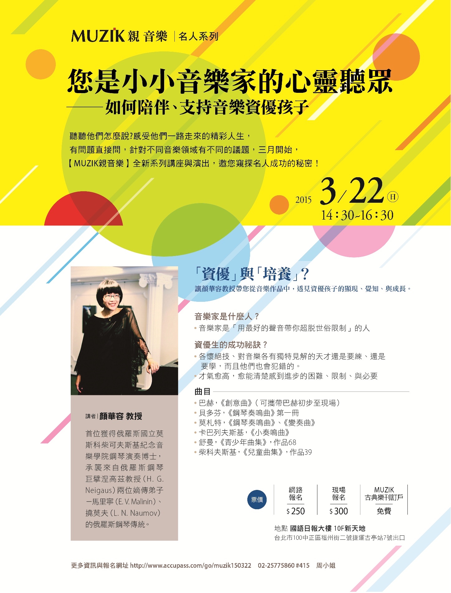 名額有限,更多相關資訊請洽詢(02)2577-5860 #415 hsuan7911@muzik.com.tw 周小姐
