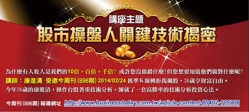 富豐專任講師群,由康老師領軍,具有股市數十年實戰經驗,非理論派,以長線投資結合短線切入時機,透過技術分析成為短線與長期投資的贏家,並且不保留的親自傳授賺進 近9位數字關鍵技術。更多講師簡介可上網站查詢
