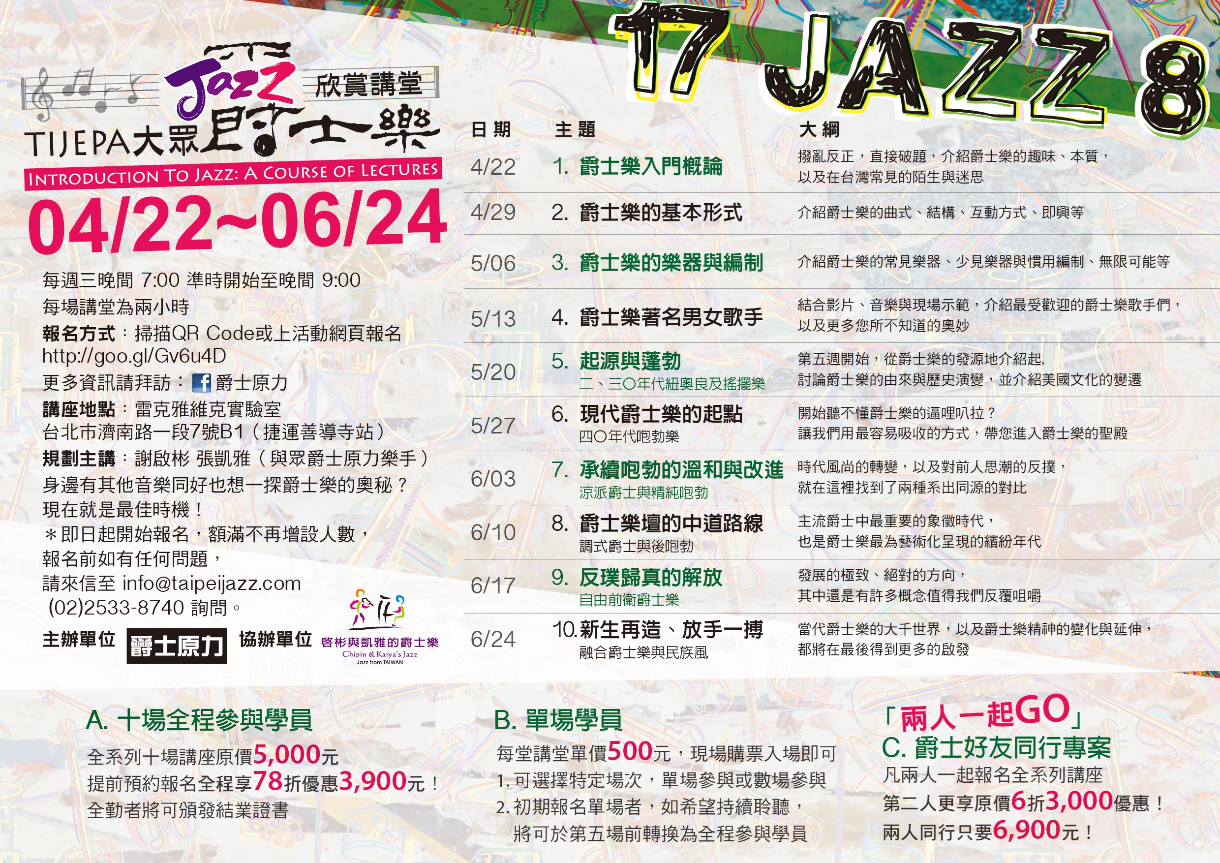 活動網站: http://www.taipeijazz.com/TIJEPAIntroToJazzLectures/