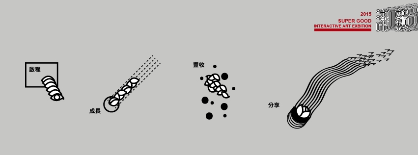 我們邀請國內外12位具潮流指標性的藝術家、設計師,在四大主題展區──「啟程」、「成長」、「豐收」、「分享」中,表達出對不同生命階段的感動,作品內容皆師法自然,取材於稻穀麥穗,並透過圖像視覺、互動裝置、動態影像等創作方式,匯聚心中對大自然的深刻體悟。