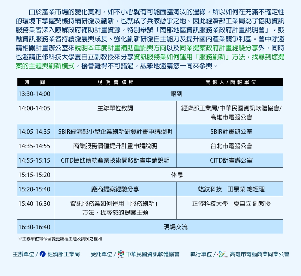 運用政府補助資源暨運用創新服務分享說明會