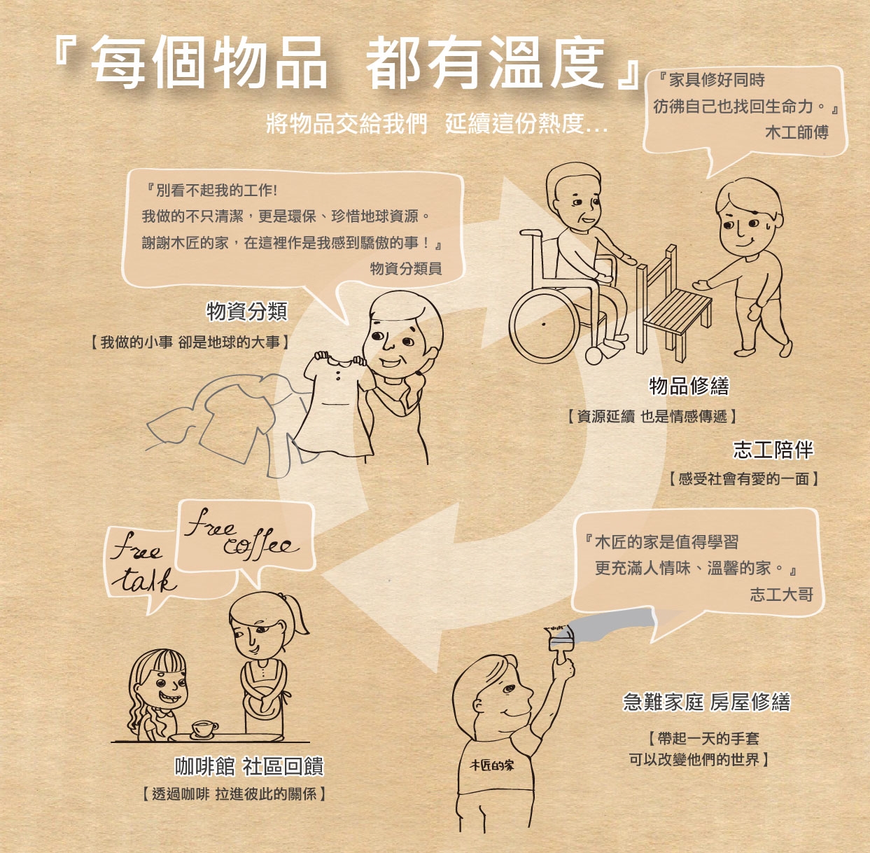 木匠的家,人休習,物修惜,從小處著手,從同理做起。