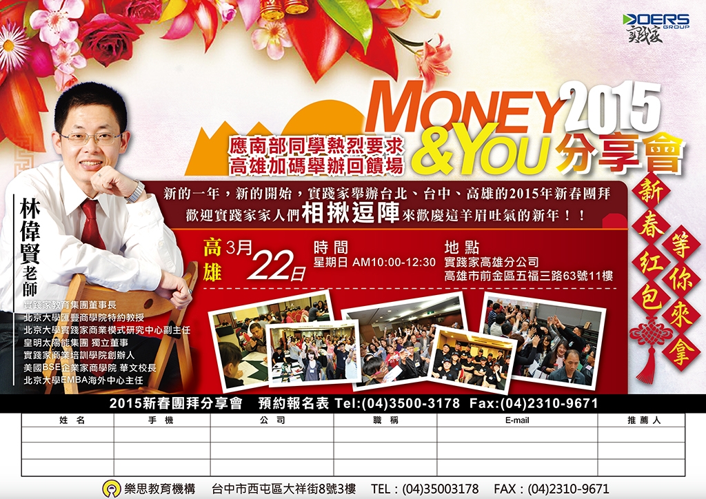 本次林偉賢老師將與您分享Money&You的精髓,