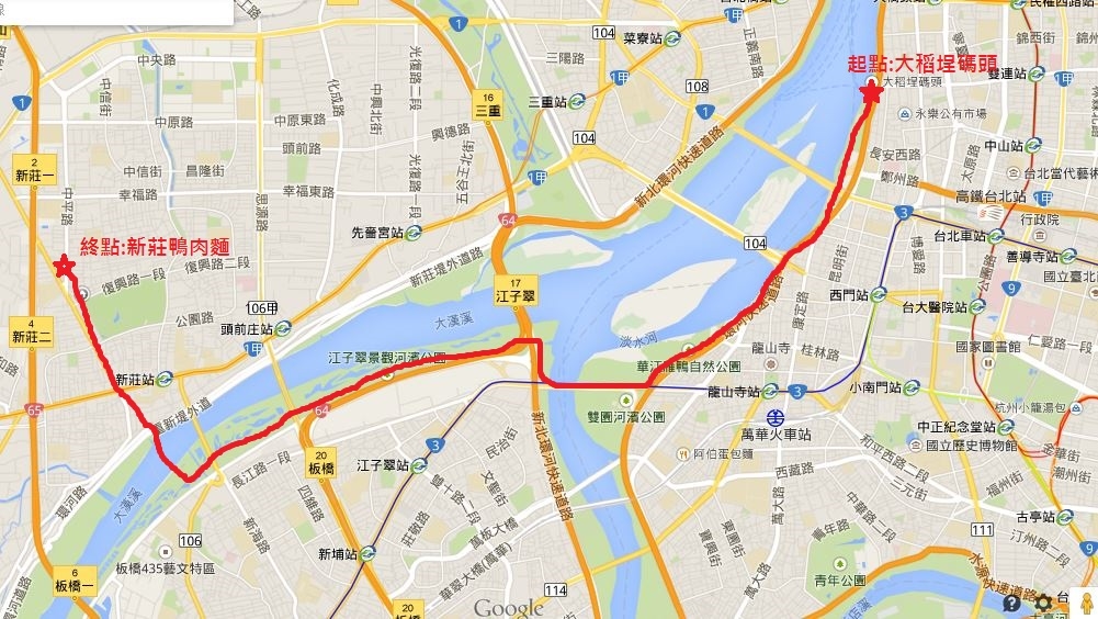 大稻埕碼頭 >> 新莊中平路 約10公里
