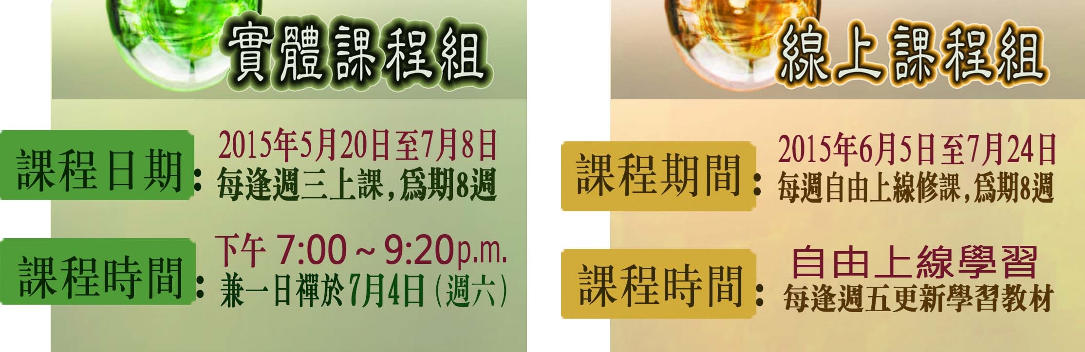 5月20日到7月8日(為期8週)在德貴學苑開設實體課程;