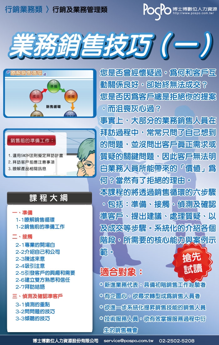 本課程為數位學習方式,請於繳款完成後,聯繫並提供繳款收據予博士博林小姐,電話:02-2502-5208#230,我們將為您開立1個月期限的學習帳戶,您可自行安排時間進行線上學習,預祝您學習愉快!