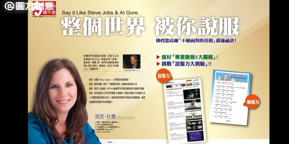 2011年更邀請南西杜爾(Nancy Duarte)來臺傳授影響世界的視覺溝通術。南西杜爾是美國前副總統高爾「不願面對的真相」簡報製作人,該簡報讓環保議題成為全球議題,更將高爾推向另一個高峰。