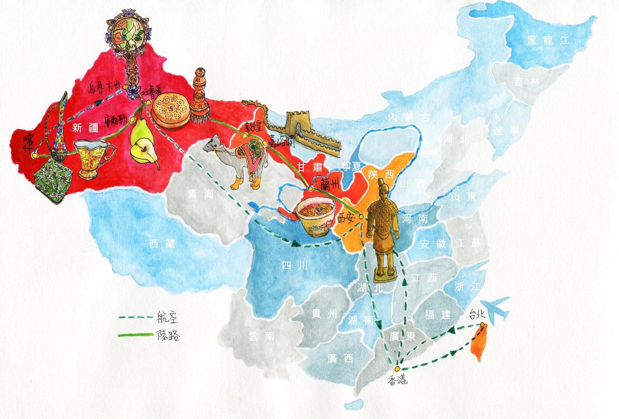 自西安、蘭州、嘉峪關、敦煌、吐魯番、庫爾勒、喀什到烏魯木齊,