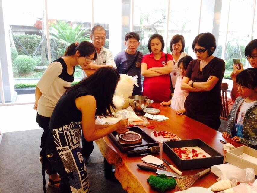 (1)由主廚教導大家從蛋糕體製作、烘烤到彩繪,完全實作