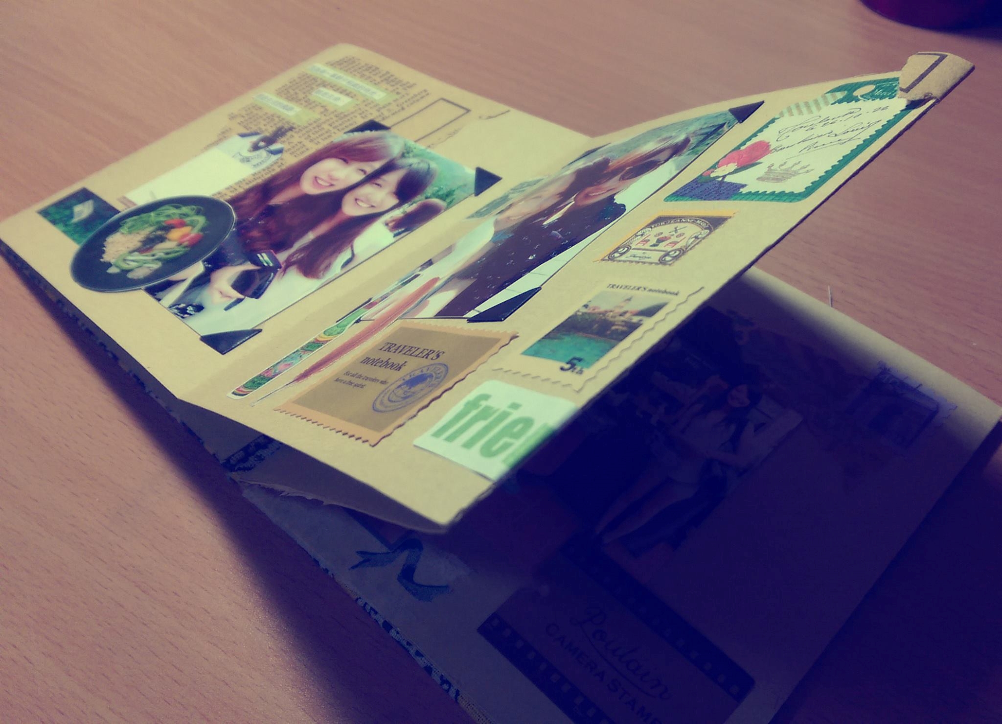 在市面上看到了好多好多種形式筆記本,有左右翻開的、上下翻開的,而我因為熱愛蒐集這些筆記本,開始用自己的方法創作了許許多多的小書,在製作了這麼多小書中,這是我第一次嘗試以較厚的紙,利用過去的做法,將小書的內頁簡化,以拉頁的方式製作內頁,讓筆記本不再只是個筆記本,也可以是一個主題式的小相冊,或者是一個送給好朋友的溫馨卡片。