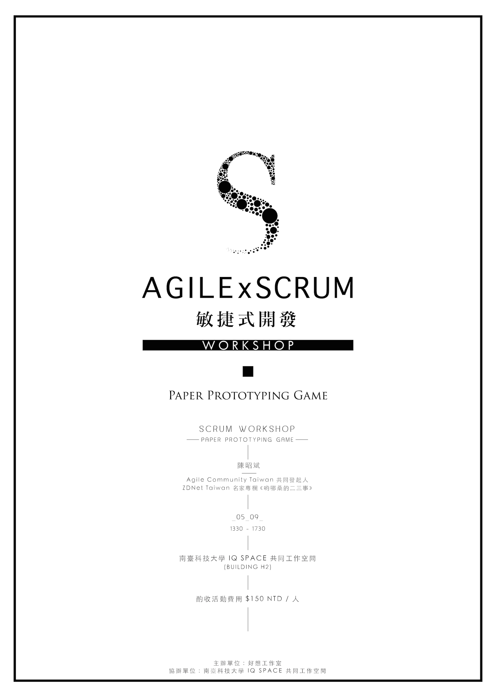 這個活動是為了沒聽過、沒看過、沒碰過 Scrum 或 Agile 的人所設計,甚至不會coding的人也行。希望能在兩三個小時內,帶領大家體驗一下 Scrum 的魅力,怎麼樣讓團隊能夠協同工作,完成你們的作品,不要為了自己的背景差異而猶豫!