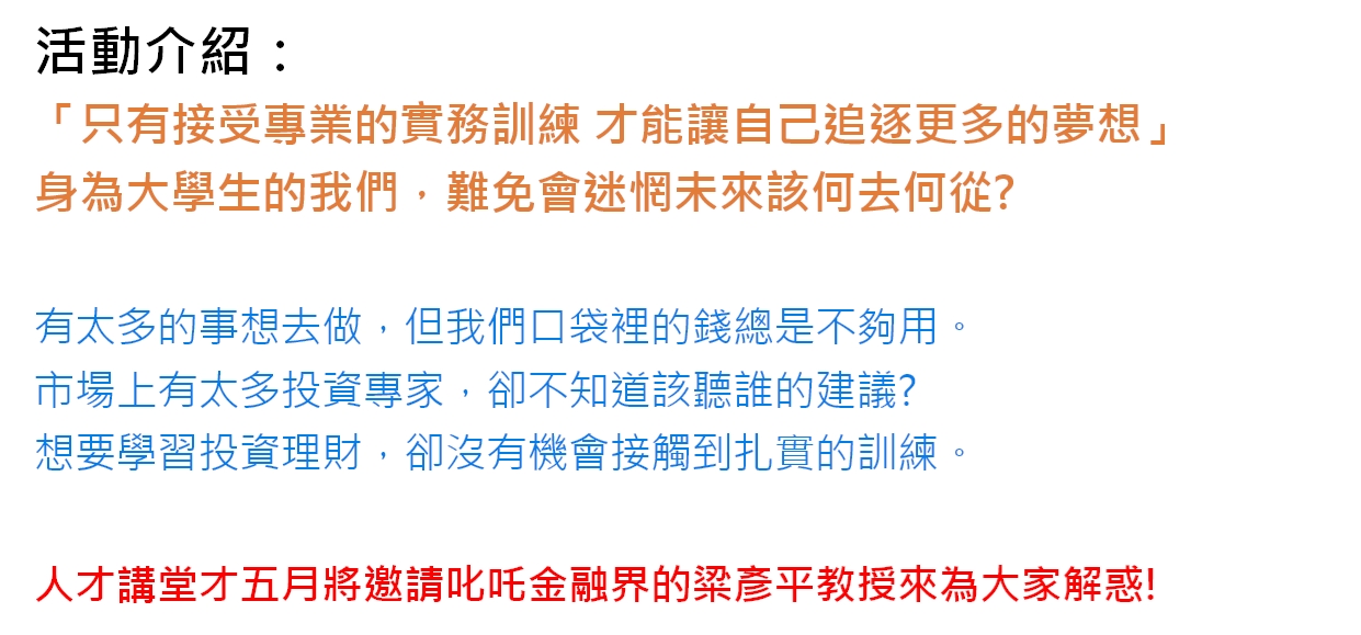 【人才講堂】-如何養成年輕人應有的投資理財觀念