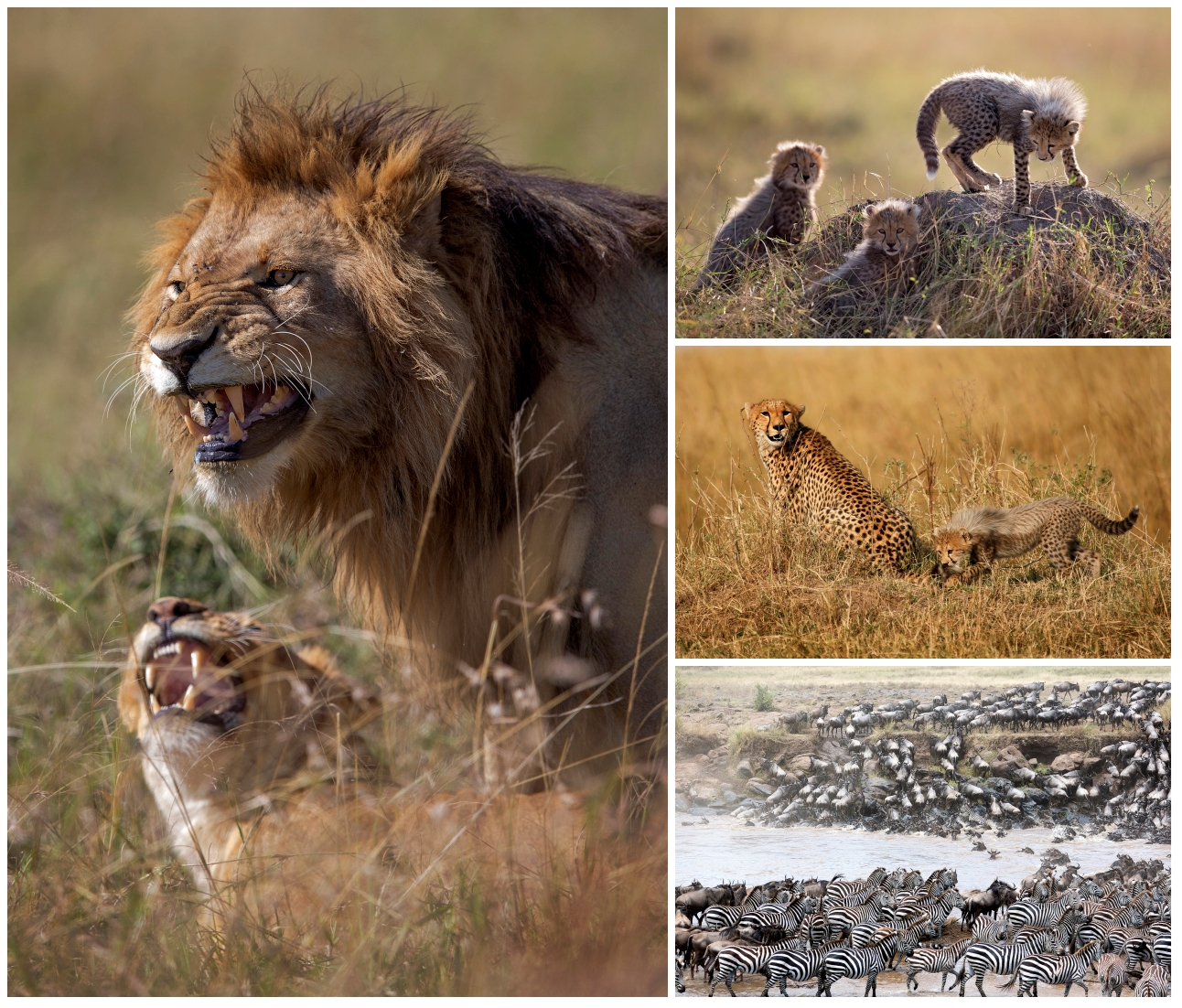 早在太陽尚未露出照亮非洲金色草原大地,樹屋旁的池子早有草食動物趁著清晨的露水未乾飲用每天的第一口生命之水、嚼食美味的青草,但同時也成為肉食動物的第一餐,獅子、豹、象、狒狒、羚羊、犀牛、紅鶴、長頸鹿、河馬開始各自的一天。奈瓦夏湖是河馬和400 多種鳥類的棲息地,非洲魚鷹高超獵食技巧更是吸睛。國家公園的獅子家族正無憂無慮嬉戲把玩,趴軟在樹下乘涼,數量眾多的羚羊在草原上奔跑看似狀觀,但仔細一看獵豹也在其中,瞬間成為獵人穿梭當中,畫面最為驚悚壯闊。
