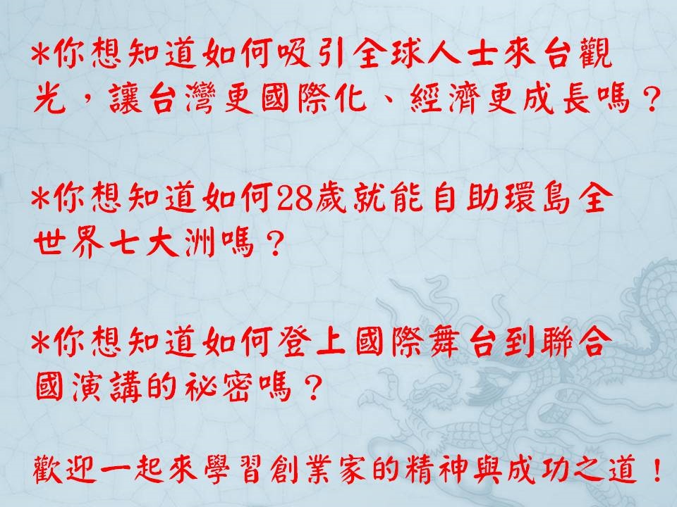 ✿請參加來賓著正式服裝並攜帶50張名片及準備50秒自我介紹或產業介紹。