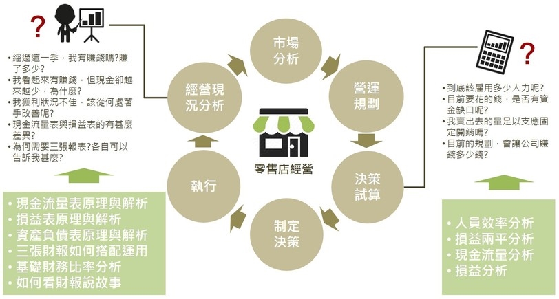 - 經營者需要的系統性思考,對企業經的產、銷、人、發、財各思考面向