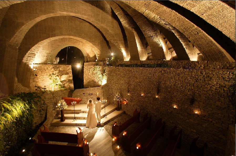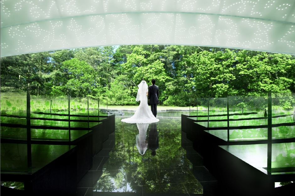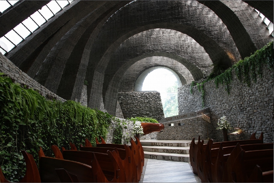 左圖-山梨葉之教堂(ZONA)/ZONA在義大利與代表聖域,圓弧型的屋頂下許下誓言