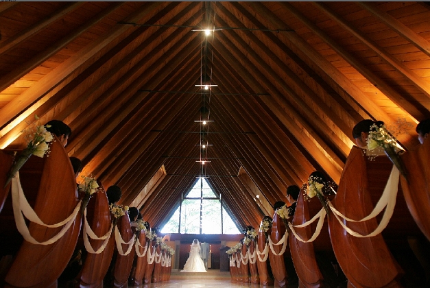 左圖-輕井澤高原教堂/是日本第一個讓新娘穿著婚紗舉辦西式婚禮的教堂
